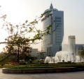 漂亮的办公大楼,宽阔的广场,广场东侧有一座假山,假山的东侧是一个喷泉,喷泉的南缘有一条水渠,渠中流淌着经过处理的取自矿井的废水,水质清澈,许许多多的各色观赏鱼在水中游来游去,悠然自得。渠水向东,经过几个精心设计的小巧瀑布,一直流到整个园区东部的东湖。东湖水域面积虽然不大,但小桥流水,亭台楼阁,让人感到美丽精致。湖面上的白鹅野鸭,或成双成对漫游,或成伙成群嬉戏,呼应着湖边随风摇曳着的翠绿的柳枝,满眼是一派盎然生机。